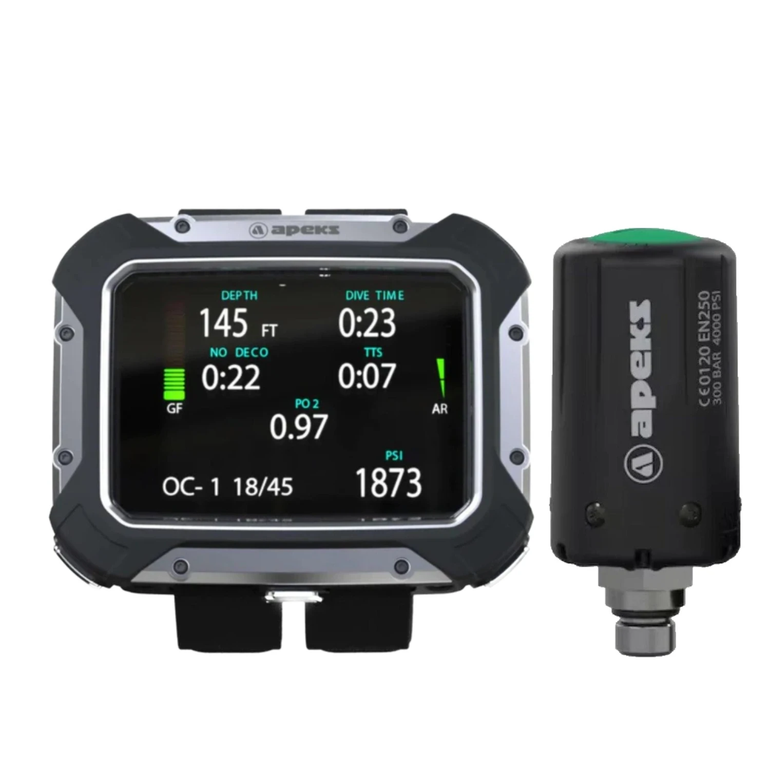 - Air-integrated and suitable for use with up to 6 transmitters, ideal for sidemount diving.