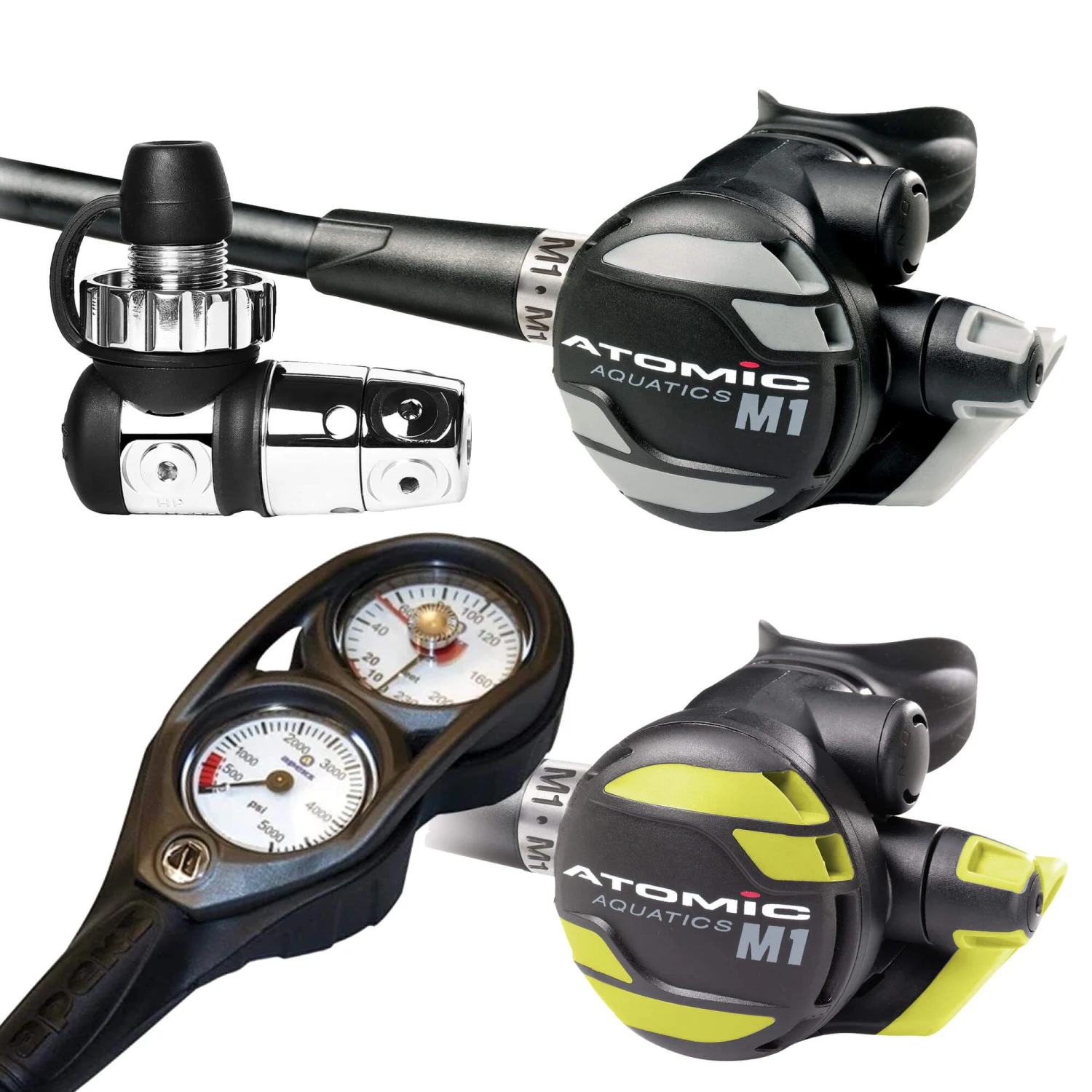 This Atomic Regulator Package includes the high performing M1 regulator, a matching M1 Octopus and a free Apeks double console.