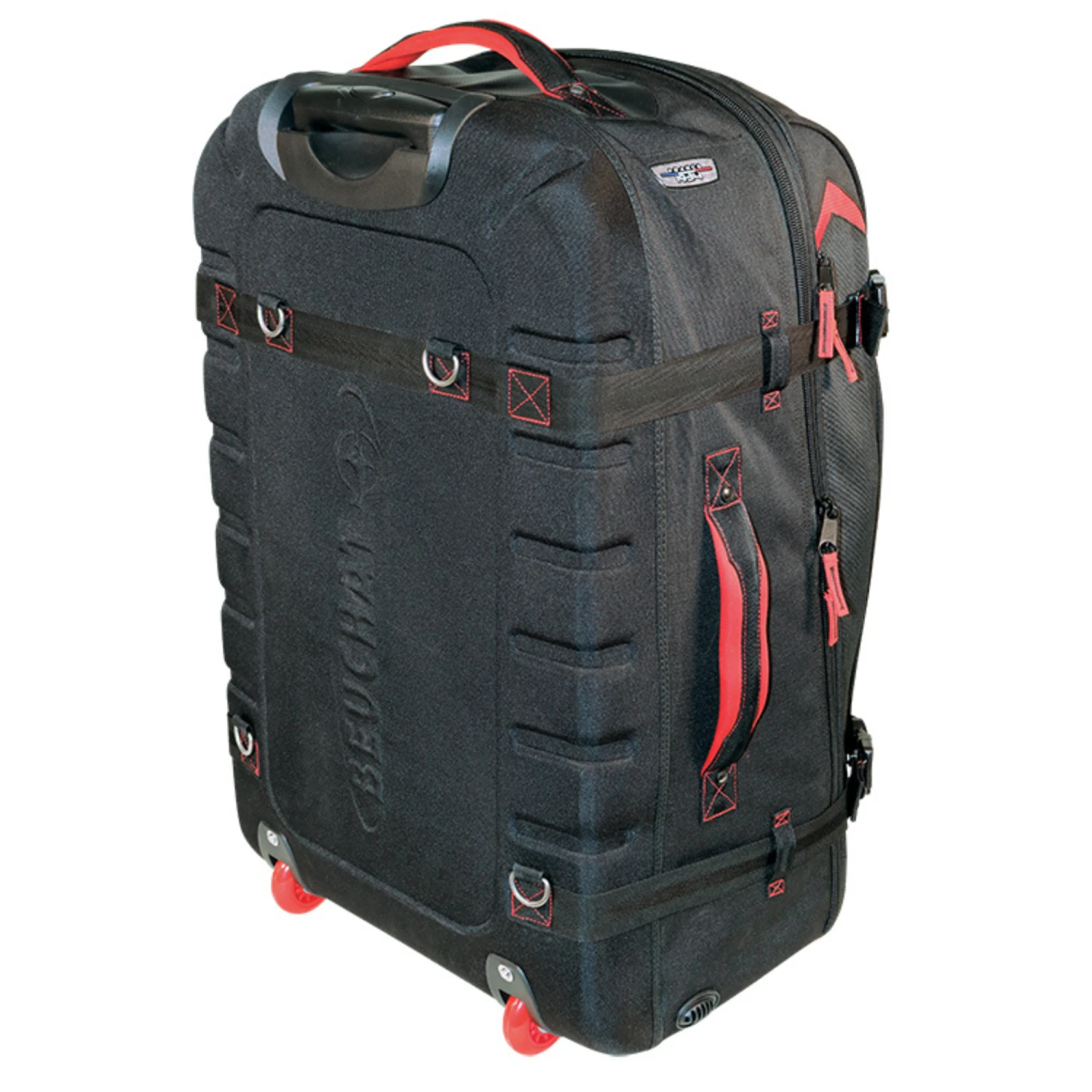 - Semi-rigid thermoformed EVA back shell that combines lightness with extra protection for the contents of the bag during transport or handling, or while the bag is being rolled.