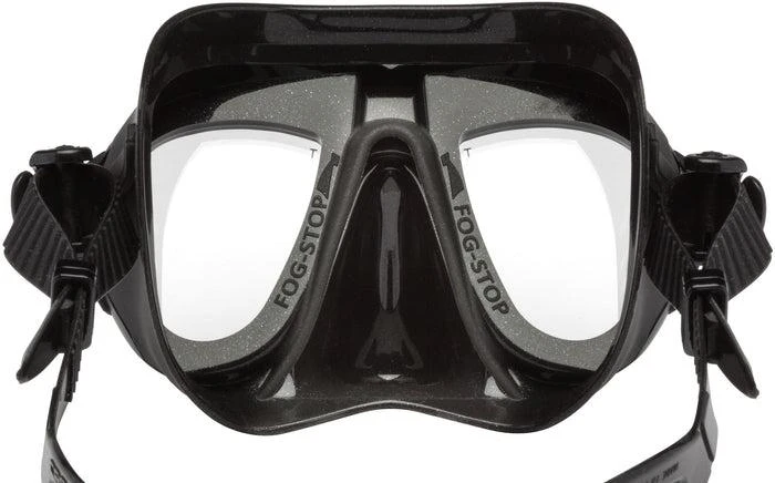 โข A patented membrane surrounding the inner nose pocket which acts as a barrier and traps any moisture escaping from the diverโs nose involuntarily when breathing through the mouth. the result is that not only is the moisture channeled away from the lenses, thus avoiding the fogging up of them, but it also reduces the need to compensate for pressure. to further improve the anti-fog effect, Cressi suggests, the first time that the dive mask is used, spray some anti-fog solution or apply some saliva on the inside of the lenses and then rinse them with water.