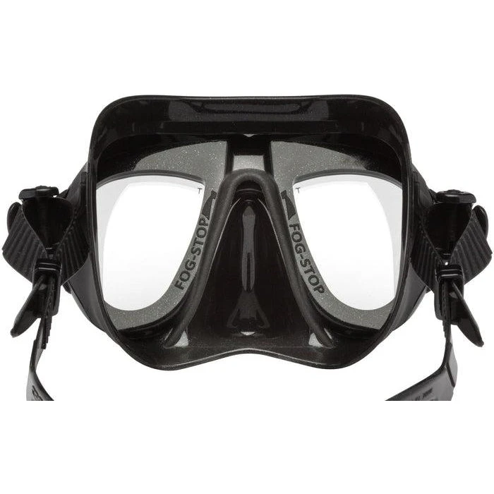 • A patented membrane surrounding the inner nose pocket which acts as a barrier and traps any moisture escaping from the diver’s nose involuntarily when breathing through the mouth. the result is that not only is the moisture channeled away from the lenses, thus avoiding the fogging up of them, but it also reduces the need to compensate for pressure. to further improve the anti-fog effect, Cressi suggests, the first time that the dive mask is used, spray some anti-fog solution or apply some saliva on the inside of the lenses and then rinse them with water.