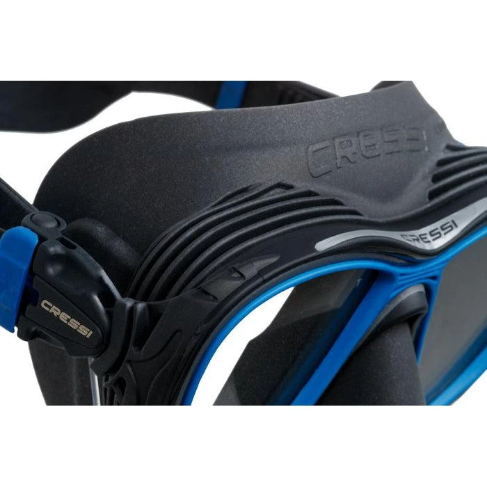 The quantum mask is a revolutionary design in the world of diving masks. It offers excellent downward vision and prevents fogging without compromising comfort. This is achieved through its sophisticated internal thermoregulation system, which diverts warm, damp air from the nose away from the lenses and towards the rubber skirt surrounding them. The external part of this skirt contains two small heat exchangers that act as radiators, allowing the mask to remain cool and clear despite varying temperatures underwater.