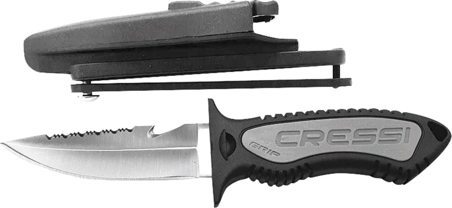 The Grip Knife is an essential tool for spearfishing and making it easier to catch fish. It features a stainless steel blade, with a high precision dagger point tip and rigid serrated cutting edge on one side and a skillfully crafted straight blade on the other. The ergonomic non-slip handle grip gives you the confidence to use it without slipping out of your hands. Additionally, a hole at the end of the handle can be used to attach a lanyard (not included).