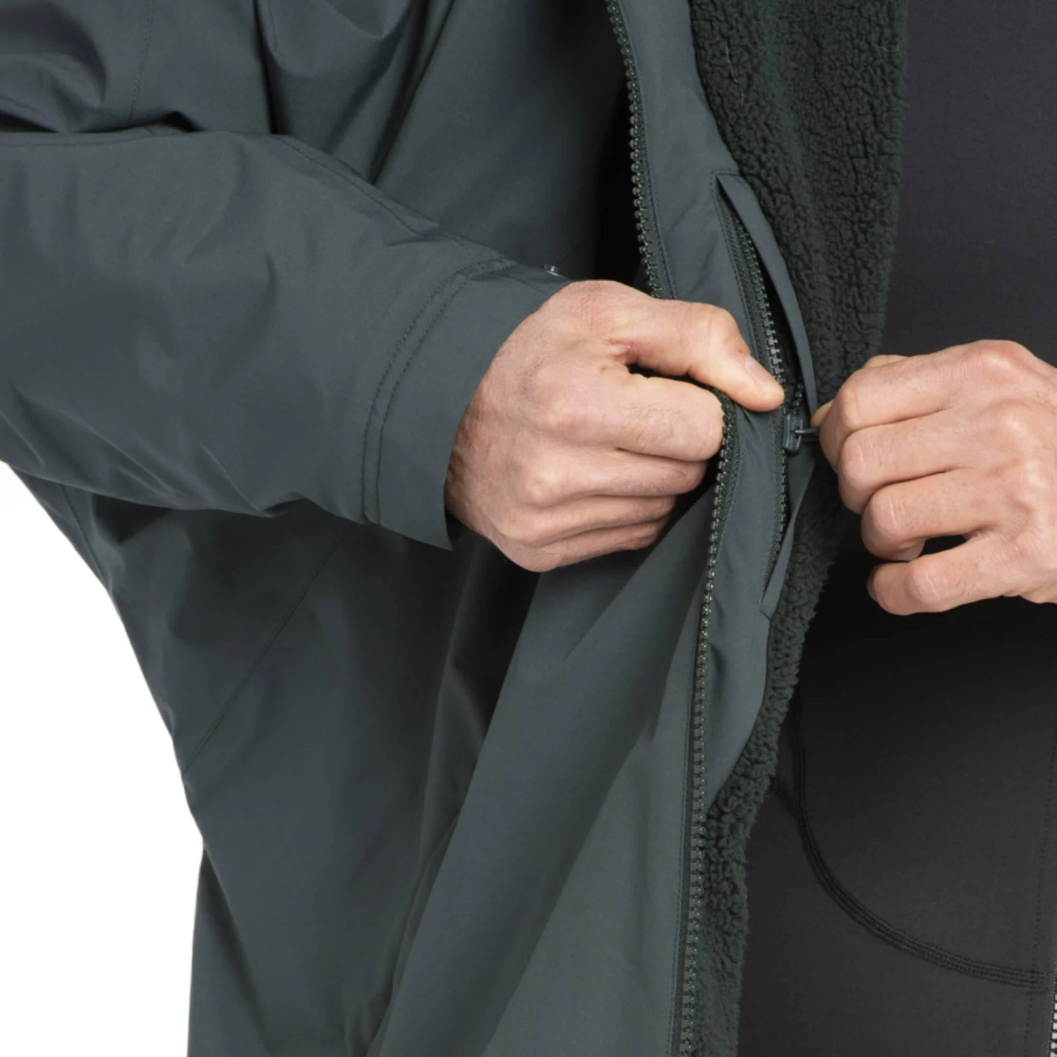 The Fourth Element Tidal Robe has a handsome kelp forest green colour and is made out of recycled polyester, using the equivalent of 50 recycled post-consumer plastic bottles. The internal lining of the robe is fully fleece-lined to keep you warm and cosy after or in between these long enjoyable water sessions on the coast. The outer shell of the tidal robe is weather-resistant and is equipped with a full front zip, oversized hood, and hand-warming side pocket. If you carry any personal belongings, these can be stored in a convenient chest pocket.Â