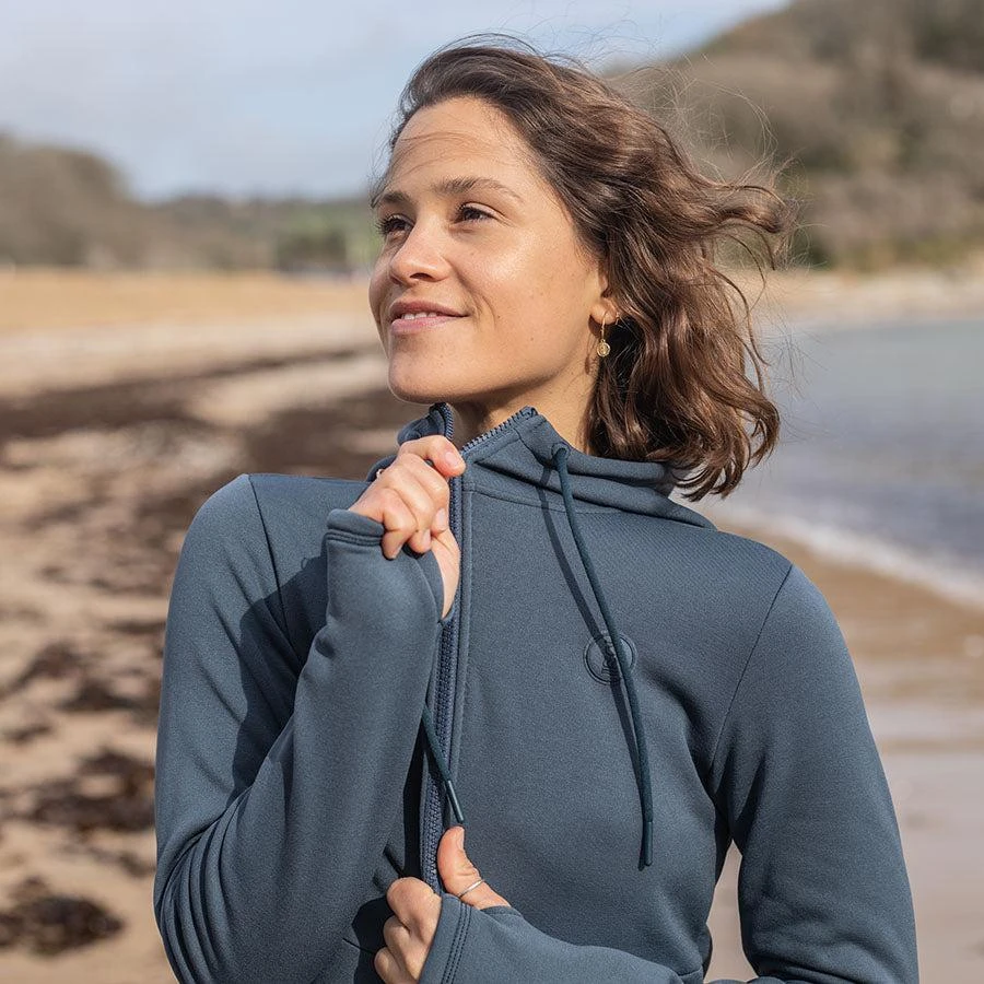 The Fourth Element Xerotherm Women’s Hoodie is an Ocean Positive product. By buying this hoodie, you contribute to the reduction of plastic pollution in the Oceans. The Fourth Elements Ocean Positive products are made from retrieved fishing nets and packaged in recycled paper bags.