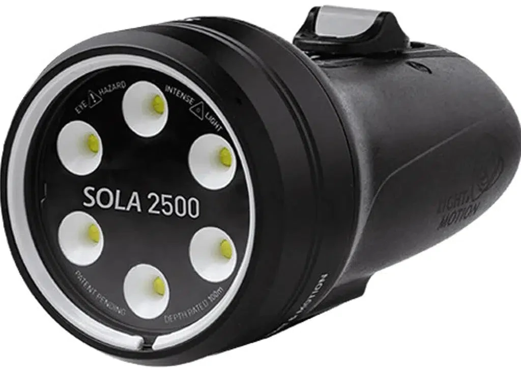 The Light and Motion Sola Video 2500 SF is a powerful and versatile video light that can also be used as a dive light or photo light and emits up to 2500 lumen with spot and flood LED configurations.