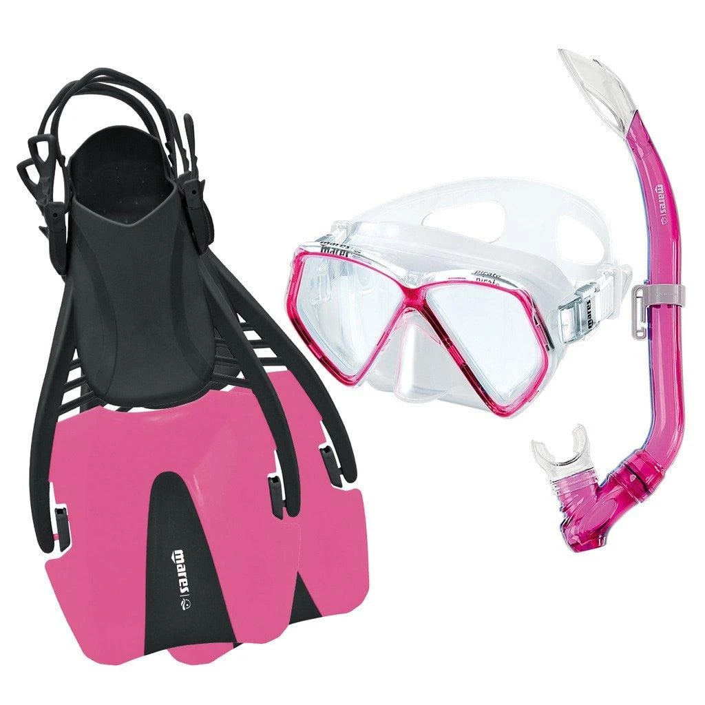 The Mares Coral Pirate Youth Set include a mask, snorkel and fins specifically sized for older kids between the approximate age of 8 and 12 years. This set includes all of the features and materials you would expect in a standard adult set so there is no compromise on safety or comfort.