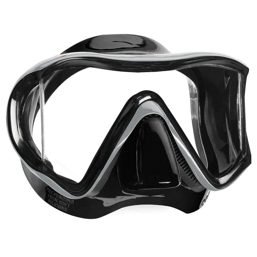 The Mares i3 Dive Mask offers an unparalleled field of vision thanks to its teardrop frame shape and side panels that wrap around the side of the face for improved peripheral vision.