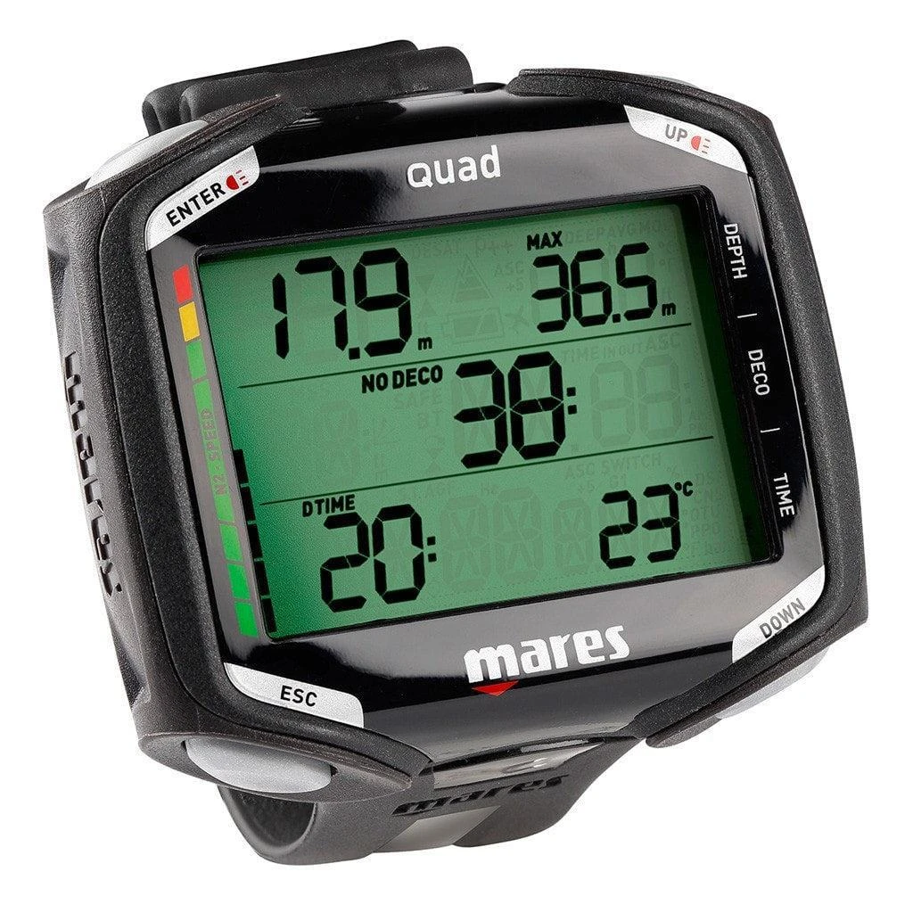 The Mares Quad has three operating modes, Air, Nitrox and Bottom Timer and supports up to three different gas mixes in Nitrox mode for switching during a dive. The dive computer is PC compatible with the optional interface cable to download your dive profile data to your PC.