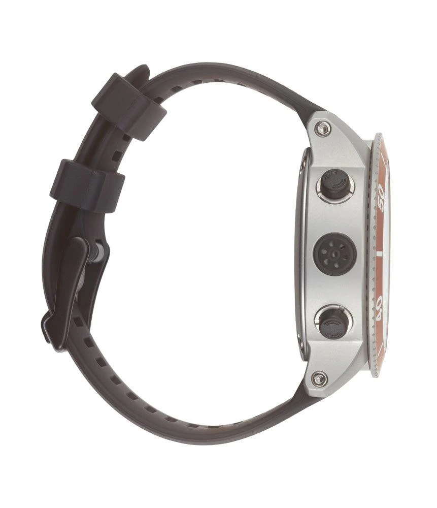- Optional wireless integration allows to monitor tank pressure, RBT (remaining bottom time) and air consumption factored into decompression