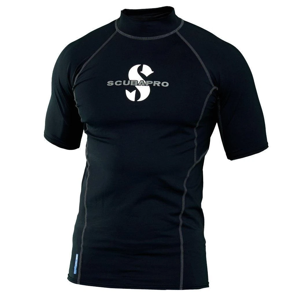 This Scubapro Short Sleeve Men’s Rash Guard gives protection to your torso and upper arms against 98% of UV radiation thanks to it’s UPF 50 rating. The lightweight polyester material is comfortable and abrasion resistant for long life and quick drying to avoid excessive cooling from wind chill.