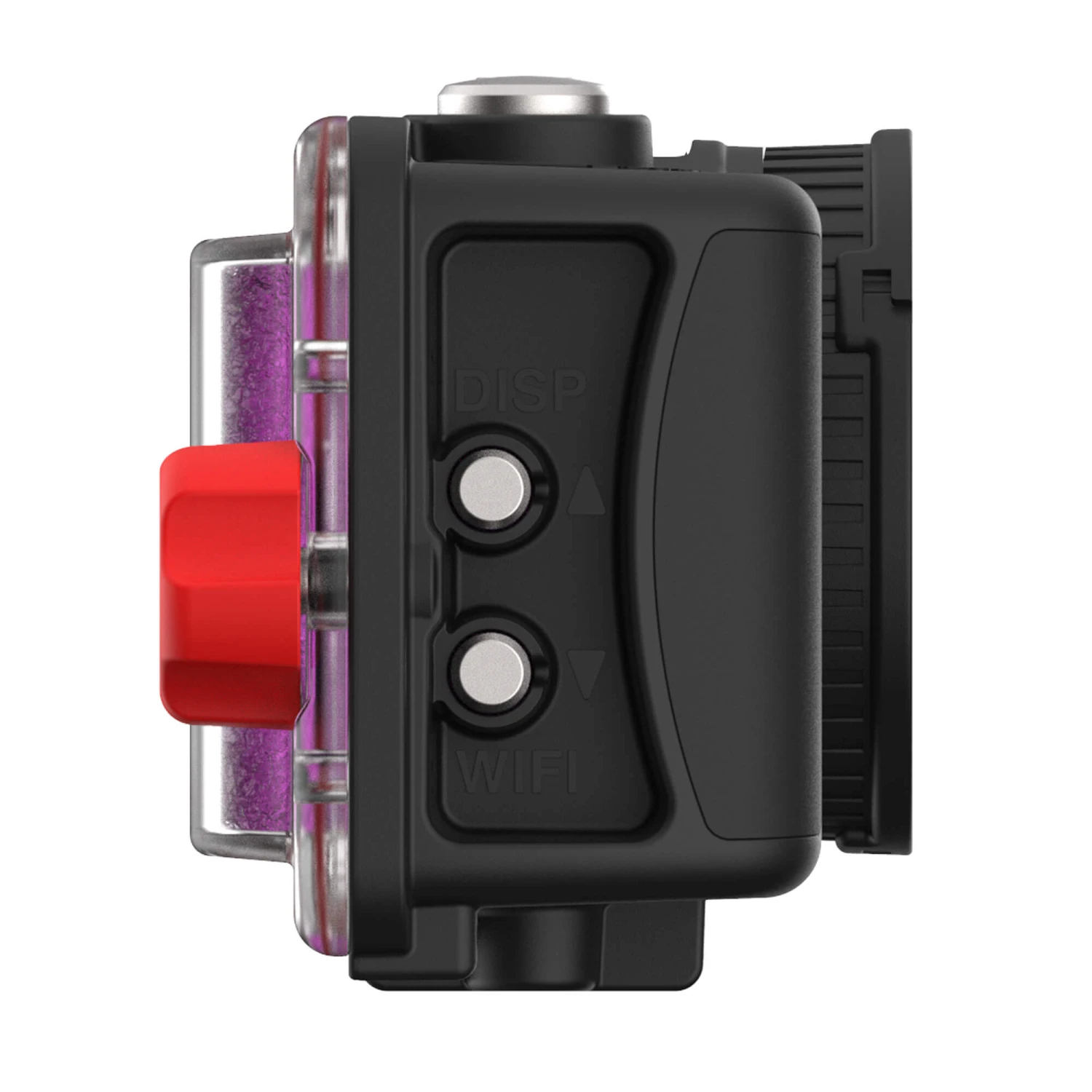The housing has been specifically designed for underwater use, to be easily gripped and operated with gloves on and features a unique thumb screw closing system that exerts just the right amount of pressure on the housing o-ring to seal it properly. The external housing gives the camera it’s waterproof and pressure rating, and it also stores a drying agent ‘Moisture Muncher’ to help prevent the interior fogging due to heat and humidity trapped within the housing.