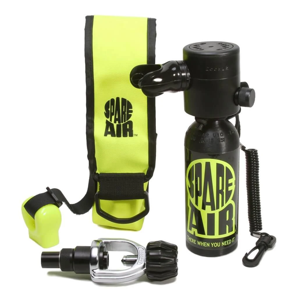 The Spare Air 170 with Dial Gauge package is a reliable, independently usable emergency air system that was developed to give you life saving breaths during an out of air emergency ascent.