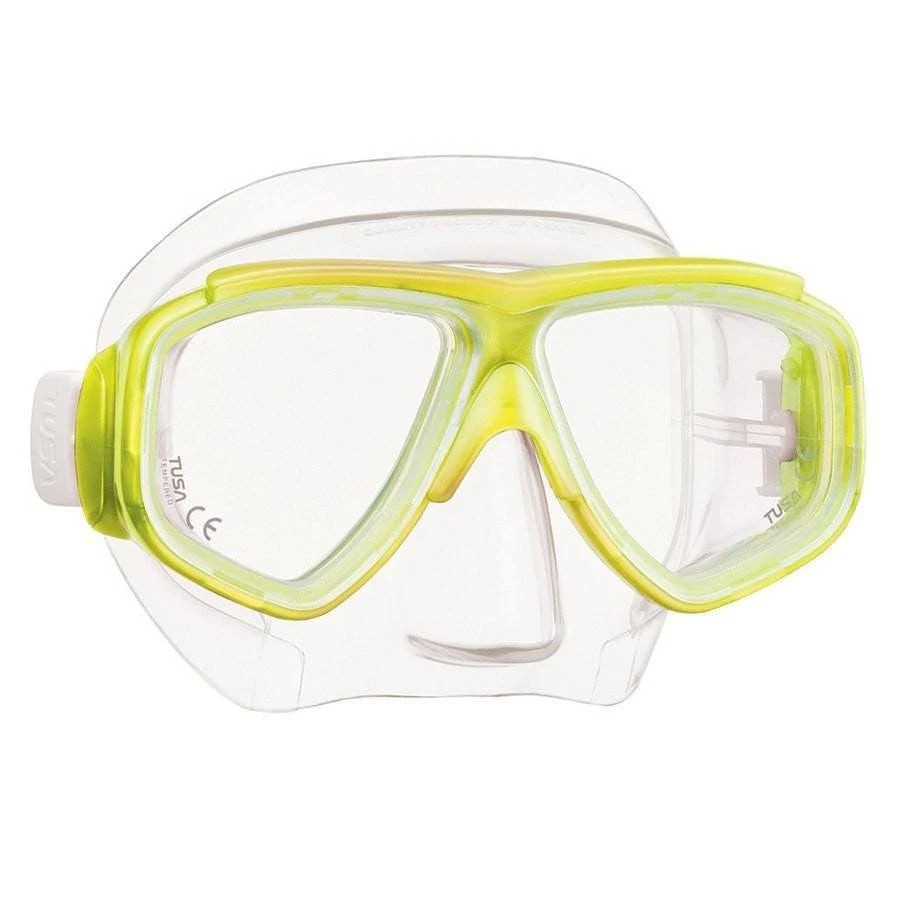 The Tusa Splendive II Mask is a lightweight and compact mask with a strong frame and twin-lens design that allows corrective lenses to be fitted in minus, plus and bifocal lens configurations.